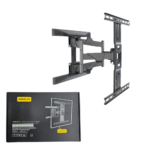 Brazo reforzado de 45 centímetros de largo que permite dar un giro de hasta 180° a los televisores, inclinación de hasta 8° y ajuste de nivel de 3°. Este soporte resiste hasta 60 libras de peso y posee un sistema de organización de cables.